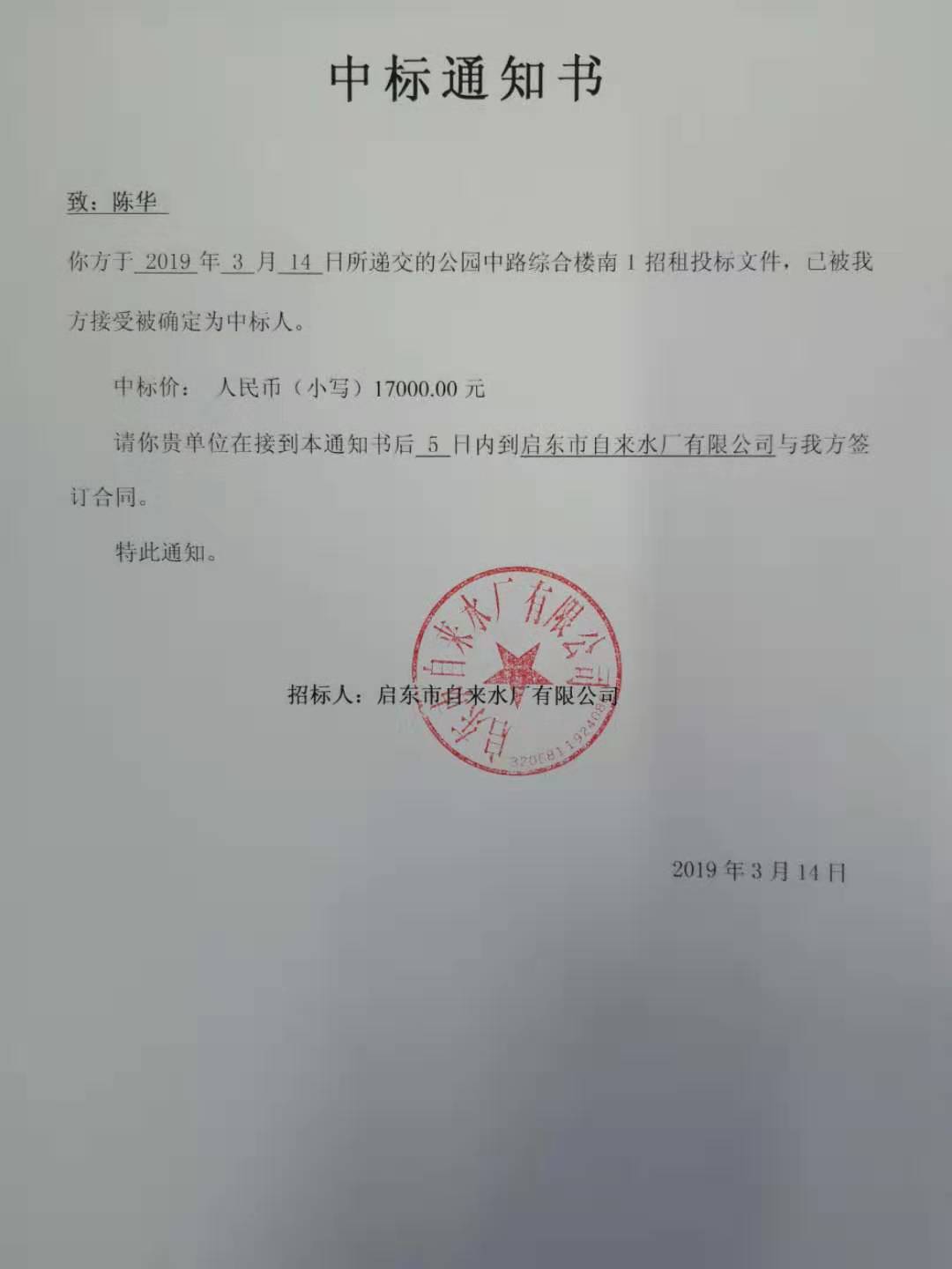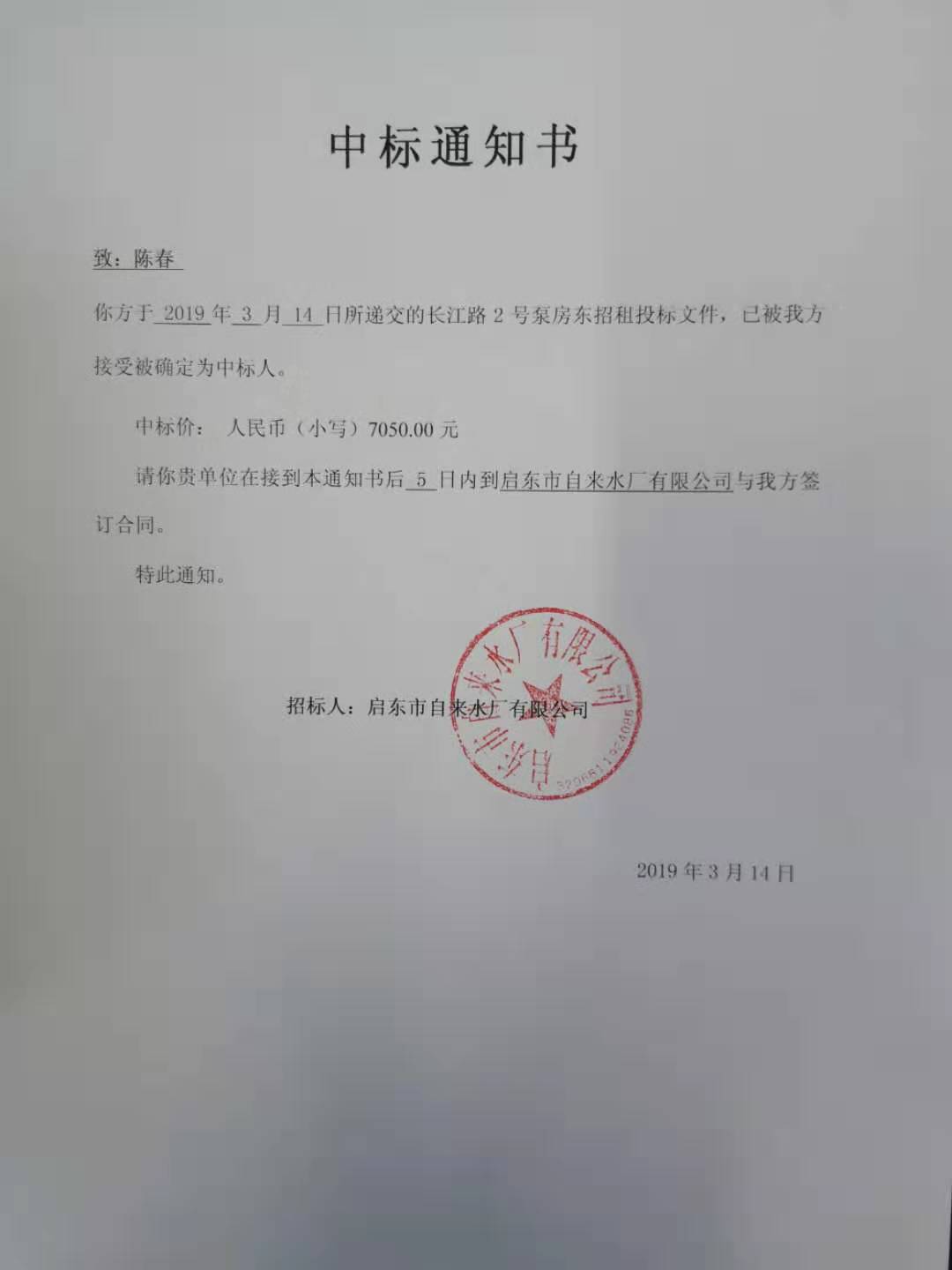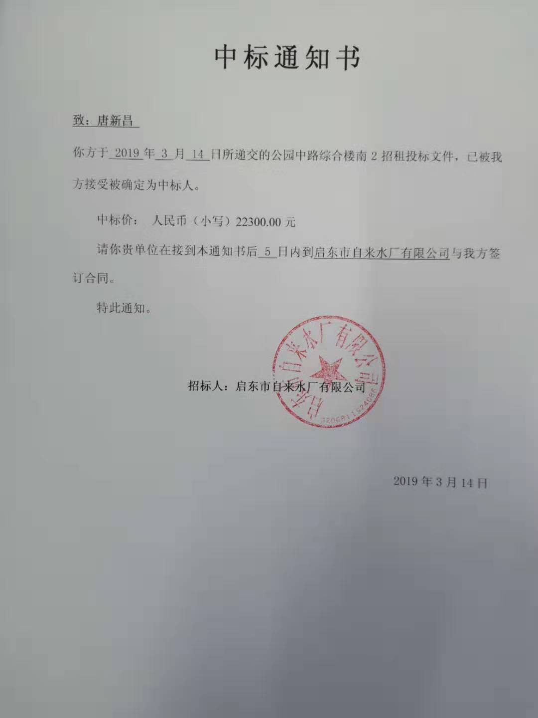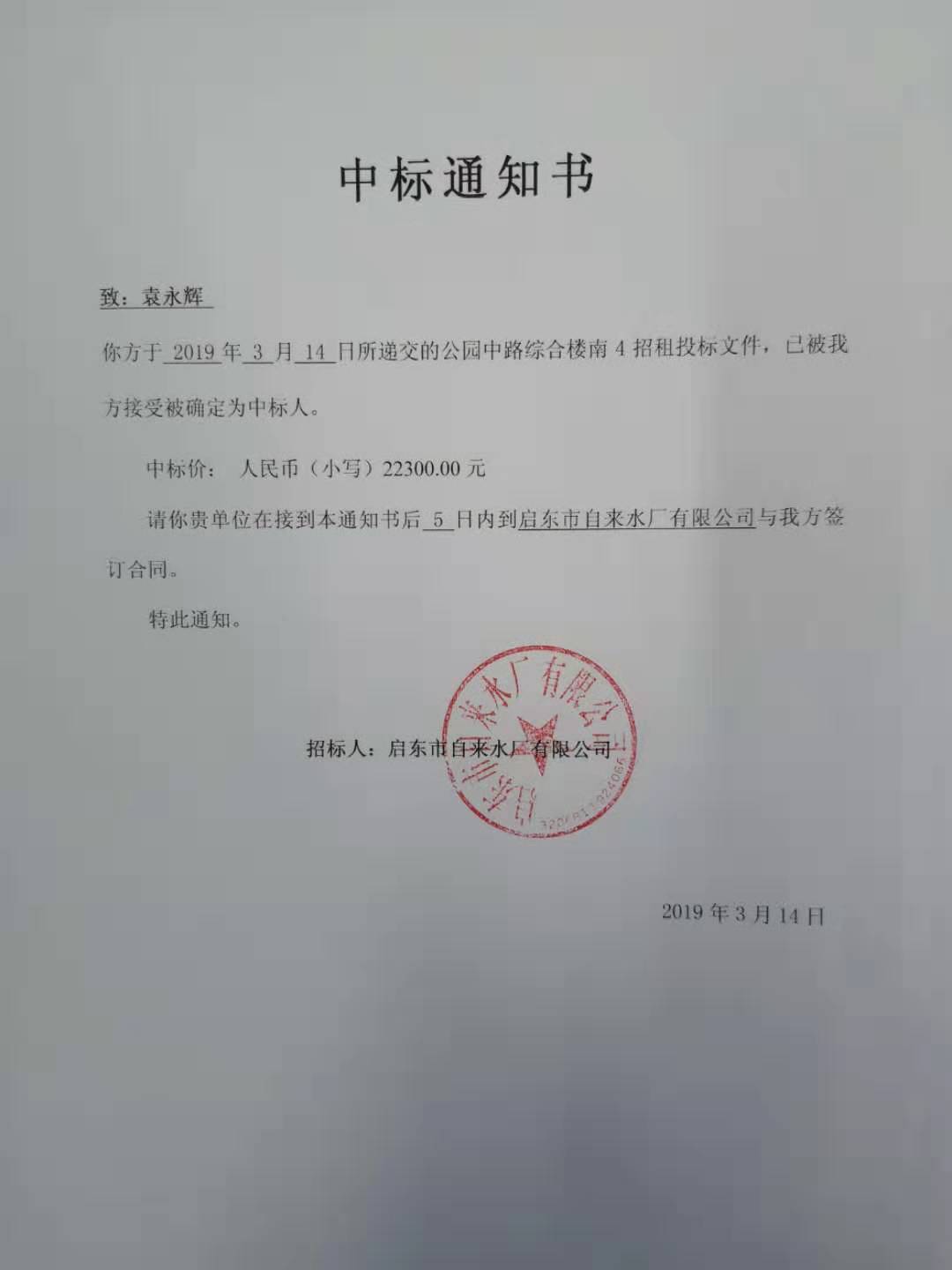 中标通知书